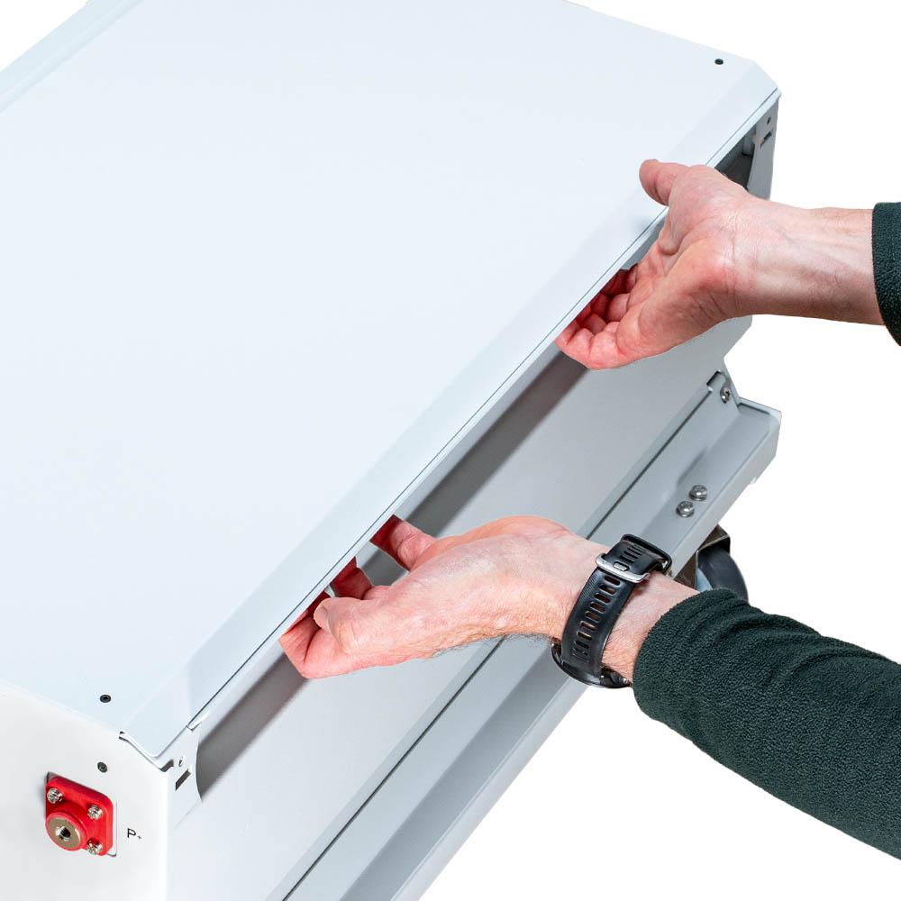 Bardzo dobry dostęp do wnętrza umożliwia szybki montaż ogniw, BMS i dodatkowych elementów. - Możliwość piętrowania magazynów